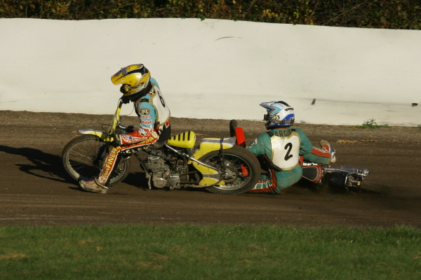 Ondřej Smetana v áčku opět lépe odstartoval. Nájezdy Zdeňka Holuba však skončily už na začátku druhého okruhu, v němž motor jeho zeleného motocyklu začal stávkovat. „Prská to, asi je to přidřený,“ vysvětloval důvody jeho majitel.