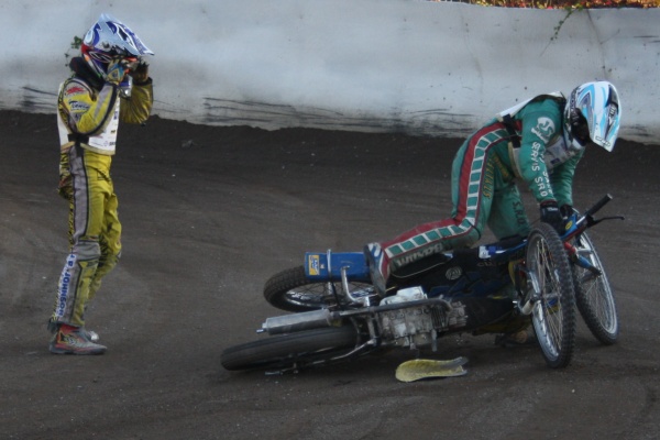 Ve druhé zatáčce se však přetočil a upadl. Téměř současně se poroučela k zemi také liberecká závodnice. Ta vyhrála nehodnocený, leč nesmírně důležitý vložený závod, kdo se vrátí rychleji do sedla. Zdeněk Holub jí už posléze nedokázal dostihnout. Nakonec se sice vypořádal s Jakubem Ondrouškem, ale senzační rozjezd s Filipem Šifaldou o finále A ho neminul.