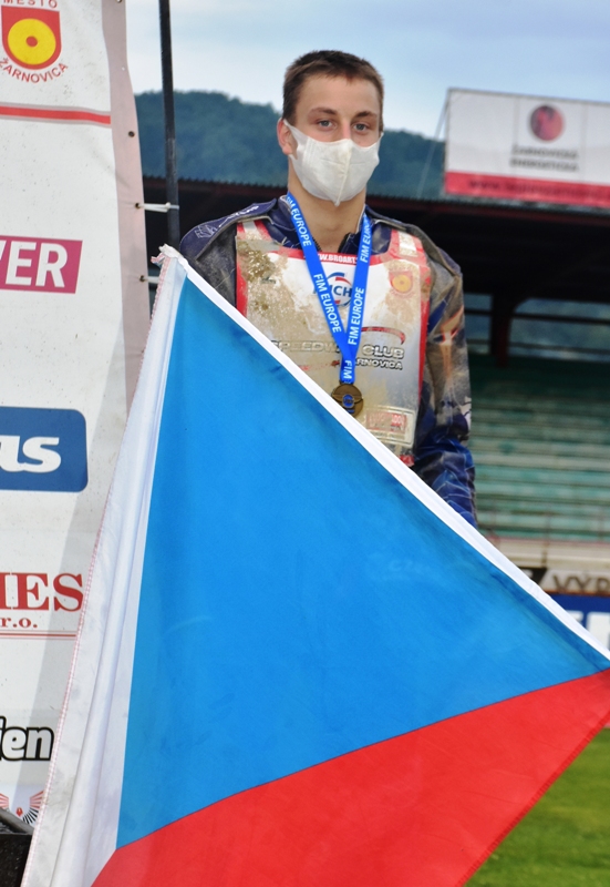 Podzimní triumfální série pražského juniora začala vlastně ještě dřív než babí léto. V půlce srpna se solidním výkonem v pardubickém semifinále kvalifikoval do evropského poháru do devatenácti let ve slovenské Žarnovici. V něm zaznamenal trošku pomalejší rozjezd. Pak vystřihnul dvě trojky a jel rozjezd s Esbenem Hjerrildem. Dánovi naložil už při letu pásky vzhůru a stál na nejnižším stupínku pódia.