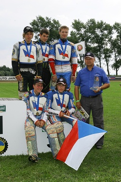 Jan Holub: „Je to úspěch, ale zas taky slavný závody to nebyly. Poláci byli jasný. Začátek vypadal dobře, ale Švédové se s tím srovnali. My moc ne. Byly tam defekty z docela dobrejch‘ pozic. Dráha byla po dešti hodně zajímavá. Moc jsem tam dvakrát spokojenej‘ nebyl, čekal jsem, že to bude o hodně lepší. Myslel jsem, že bude výhoda, že dráhu známe, že je přece jenom domácí, ale moc se to nepotvrdilo. Byla úplně jiná a s těma vejfukama to žádná sláva není. Moc hezky se na ně netvářím, radši bych ty starý. Měl jsem problém, že odcházely motory a vydržely jen pár závodů. Je tam o něco jiný nastavení s převodama a s motorem, co si myslím já. Největší problém je, že jsem motorku vůbec neslyšel, jestli to chce jinej‘ převod. Hlavně na tý těžký dráze je poznat, že je to hodně slabý a podle zvuku jsem si připadal, že jedu na Pionýru. Bronz je určitě úspěch, kterej‘ se dá zapsat, druhý místo by ale bylo hezčí. Škoda.“