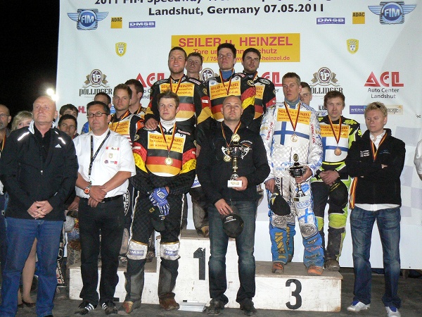 Neméně zajímavé bylo i kvalifikační kolo v bavorském Landshutu. V závodě konaném tradičně pod umělým osvětlením byli považováni za mírné favority domácí reprezentanti, kteří opravdu nakonec protrhli smůlu posledních sezón a po dlouhých šesti letech mohli slavit postup z kvalifikace. Jejich cesta do hlavního turnaje ale nebyla vůbec jednoduchá. Finové, Američané a v první polovině večera i Ukrajinci jim dokázali hodně znepříjemnit život. Domácí ekipa i většina fanoušků na stadionu si tak mohla s ulehčením oddychnout až dvě jízdy před koncem, kdy tříbodový příděl Franka Fachera znamenal definitivně náskok potvrzující místenku do dalších bojů v dánském Vojensu. Hlavním tahounem vítězů byl Martin Smolinski, který jako správný kapitán nejen hecoval a tmelil tým v depu, ale vybojoval 14 bodů na dráze, čímž se stal nejlepším jezdcem večera. Úspěšně mu sekundovali i Christian Hefenbrock s Frankem Facherem, slušný bodový příděl dodal i Mathais Schultz. Naopak trochu nečekaně slabší den měl Tobias Kroner, který až vítězstvím v závěrečné sérii vylepšil svoji bodovou bilanci. Hlavní devizou Němců ale byla vyrovnanost, družstvo nemělo na rozdíl od svých soupeřů výraznější slabinu.