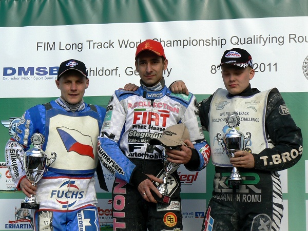 S takovými počty si vůbec nelámal hlavu Josef Franc, když krátce po startu první jízdy vystřelil do čela před Dienera a Fabrieka, postupně si vybudoval slušný náskok a kolem šachovnicového praporku prolétl bezpečně první. To Pavlu Ondrašíkovi se nedařilo vůbec, špatně startoval a marně se pouštěl do stíhacích jízd ze zadních pozic. Ze svého místa si sice mohl nejlépe prohlédnout ladné křivky Nadine Frenk, cenou za to však byla kulatá nula na jeho kontě. Přesto pomalu sbíral body a také díky defektu Chrise Millse v závěrečné jízdě základního rozpisu jich měl na kontě alespoň sedm, což o jediný bod nestačilo na postup do semifinálových jízd. To Karel Kadlec, který se letos rozhodl soustředit především na evropskou sérii veteránů, pojal závod spíše jako možnost svézt se s kvalitními soupeři. Vybojoval celkově jeden bod a byl spokojen. Mohlo to být ještě o trochu lepší nebýt vyloučení z jízdy číslo čtyři, před jejímž startem se marně pokoušel uvést do chodu svůj motocykl.