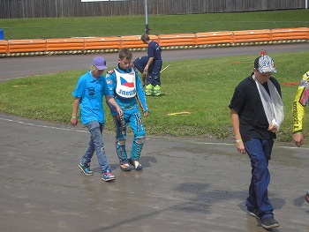 „Začátek závodu ovlivnila průtrž mračen,“ vypráví Petr Křikava. „Přestalo čtvrt hodiny před ním a prvních pět jízd bylo ovlivněno mokrou dráhou. A Eda neodstartoval na Fredrika Engmana. Byl rychlejší, ale nemohl to pustit ven.“