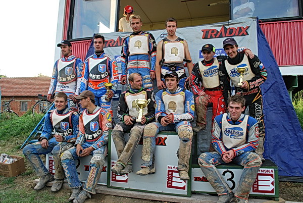 Netradiční březolupská dráha vzápětí zaskočila Martina Gavendu s Martinem Málkem, jenž navíc laboroval se správným nastavením nového motoru. Václav Milík s Tomášem Suchánkem se před ně dostali už s vylétnutím pásky. Nerozhodný stav na čele vyřešila rozjížďka s číslem deset. Tomáš Suchánek v její první zatáčce objel Filipa Šiteru. Jaromír Otruba dodal poslední bod, zatímco Stanislav Pouznar upadl.