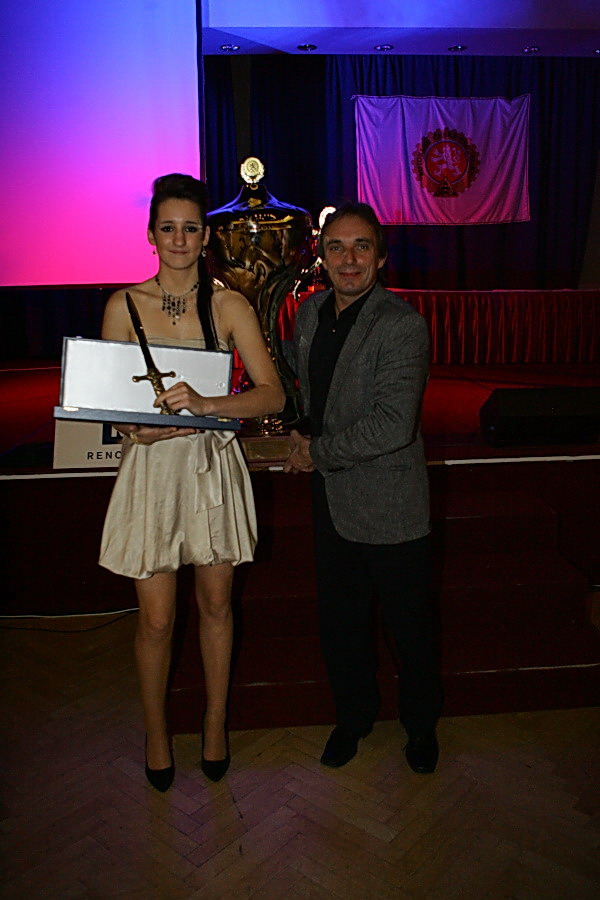 Všem přítomným však nemohl uniknout ani ve svých bílých plesových šatech, protože na pódiu byla častým hostem. „Byl to suprový pocit, na který se nezapomíná,“ svěřuje se. „Určitě jsem počítala, že tam půjdu, ale že nakonec budu mít ten meč, tak to určitě ne.“