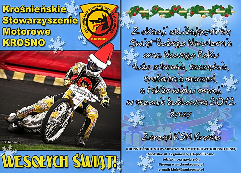 Servis Přání od KSM Krosno 22.12.2011 Antonín Škach Veselé Vánoce a splněná přání v roce 2012 přeje KSM Krosno.
