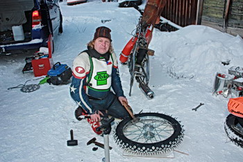 Oproti původnímu harmonogramu zůstali čeští ledaři v Arjeplogu o den déle. „Ani se mi nechtělo domů,“ přiznává Radek Hutla. „A nebejt‘ Vánoc, asi bychom tam ještě vydrželi. Naštěstí jsme to po prvním dnu měli s pády vybráno. Ještě jednou si lehce ustlal Honza Klatovský, kterýmu ušlo přední kolo. Jezdili jsme asi do čtrnácti hodin, potom se začíná stmívat. Hledali jsme nejlepší nastavení převodů, pérování a tak dále. Nejvíc jsem čekal, jak pojede nová motorka, která má novej‘ rám dělanej‘ doma na koleně. Ono to fungovalo a dost dobře. Všichni jsme byli spokojený, že jsme si mohli vyzkoušet motorky.“