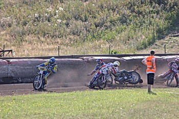 Osamocený Zdeněk Holub nemohl dělat nic jiného, než z bezprostřední vzdálenosti sledovat, jak Zdeněk Simota s Janem Holubem přivážejí na trojkoaliční konto pět bodů. Pražané se však nechtěli nechat složit na lopatky jen tak zbůhdarma. Troy Batchelor vyšel nejlépe ze startu rozjížďky s číslem třináct.