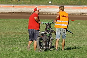 Daniel Hádek si stěžoval na bolesti v koleně a za krkem, takže v depu vyčkal příjezdu další ambulance, která ho dovezla na vyšetření. To naštěstí žádné fraktury neodhalilo, takže se plzeňský junior ještě před koncem závodu objevil zpátky v borském depu. Při repete úřadoval Matej Žagar, který vodil Matěje Kůse s Martinem Gavendou už od vylétnutí pásky.
