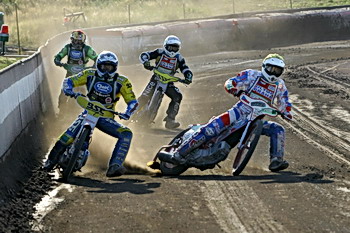 Za daných okolností jen málokdo nepředpokládal, že se náskok domácích rychle neztenčí pod zdrcujícím náporem Pražanů. Jenže trojkoaliční závodníci svou baštu hájili jako lvi. Do sedmé jízdy nejlépe odstartoval Jan Holub. Michael Hádek si vnějškem vyšlápnul na Grzegorze Walaska. Polák však druhou příčku udržel, aby se vzápětí pustil do stíhání Jana Holuba.