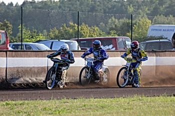 Když se dnes na plzeňských Borech neobjevil Kjastas Puodžuks, jelikož se domníval, že se extraligový duel s Prahou jedou až zítra, zdálo se být po trojkoaličních ambicích naprostá veta. Domácí se však přesto prodrali do čela, z něhož je nedostal ani pád Daniela Hádka, který skončil v nemocnici, aby se však podezření na zranění kolene ukázala naštěstí jako lichá. Olymp však přesto stupňoval tlak. A by ho ve dvanácté jízdě přibrzdila porucha Matěje Kůse, o jejíž příčinách se závodník nechtěl šířit, před dvojicí nominačních jízd byl o dva body v čele. Vzápětí Matěj Kůs a Grzegorz Walasek udeřili naplno, jenže v rozjížďce s číslem patnáct triumfoval Matej Žagar stylem start – cíl. Zdeněk Simota však dokázal během dvou kol proniknout z poslední příčky až za jeho záda a otočit výsledek v trojkoaliční prospěch. Praha si však z Borů odvezla alespoň bonusový bod a zítra do Mšena přijede stále jako druhý tým průběžné tabulky.