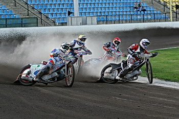Do čtvrté jízdy pro změnu nejlépe odstartoval Filip Šitera. Jenže v první zatáčce se kolem něj zprava mihnul Martin Gavenda, jakoby ho vystřelili z praku. Stanislav Pouznar byl třetí, ale naděje na remízu zmařil záhy Zdeněk Holub. Ve druhém oblouku se po spodní straně posunul na třetí místo.