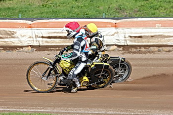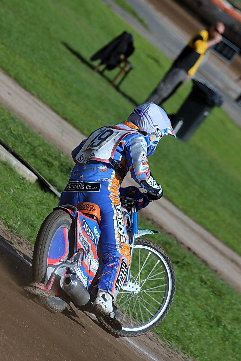 Pro odpolední závod připravil zásadní změnu Lubomír Vozár, když na náhradníka dal Tomáše Suchánka. My jsme opět útočili od začátku, avšak Václav Milík byl v cíli rozjížďky s číslem jedna dříve než Roman Čejka. Start druhé jízdy zvládl nejlépe Michal Dudek, jenže v prvním oblouku ho překonal Filip Šitera. Hynek Štichauer se ale zapletl do šarvátky s Ondřejem Smetanou, jehož musel ve druhé zatáčce vyhnal daleko z optimální stopy.
