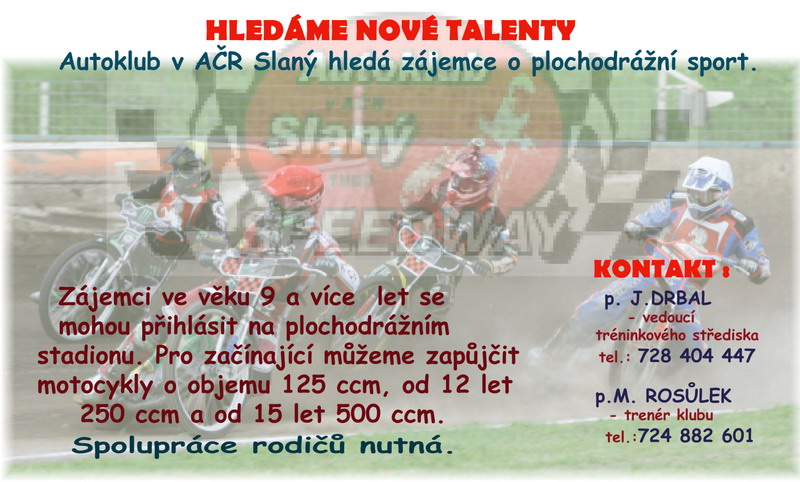 Neutěšená a tristní situace v Autoklubu Slaný ohledně nové nastupující generace mladých plochodrážních nadějí především v nejslabší plochodrážní kubatuře do 125 ccm a nejen v ni přiměla vedení klubu po skončení minulé sezony přikročit k opatřením. Ta měla přivést mladé adepty plochodrážního sportu do jednoho z historicky nejstarších a nejúspěšnějších tuzemských klubů. Pakliže by někdo z mladších čtenářů chtěl sám usednout do sedla plochodrážního motocyklu, tento článek by rozhodně neměl uniknout jeho pozornosti.