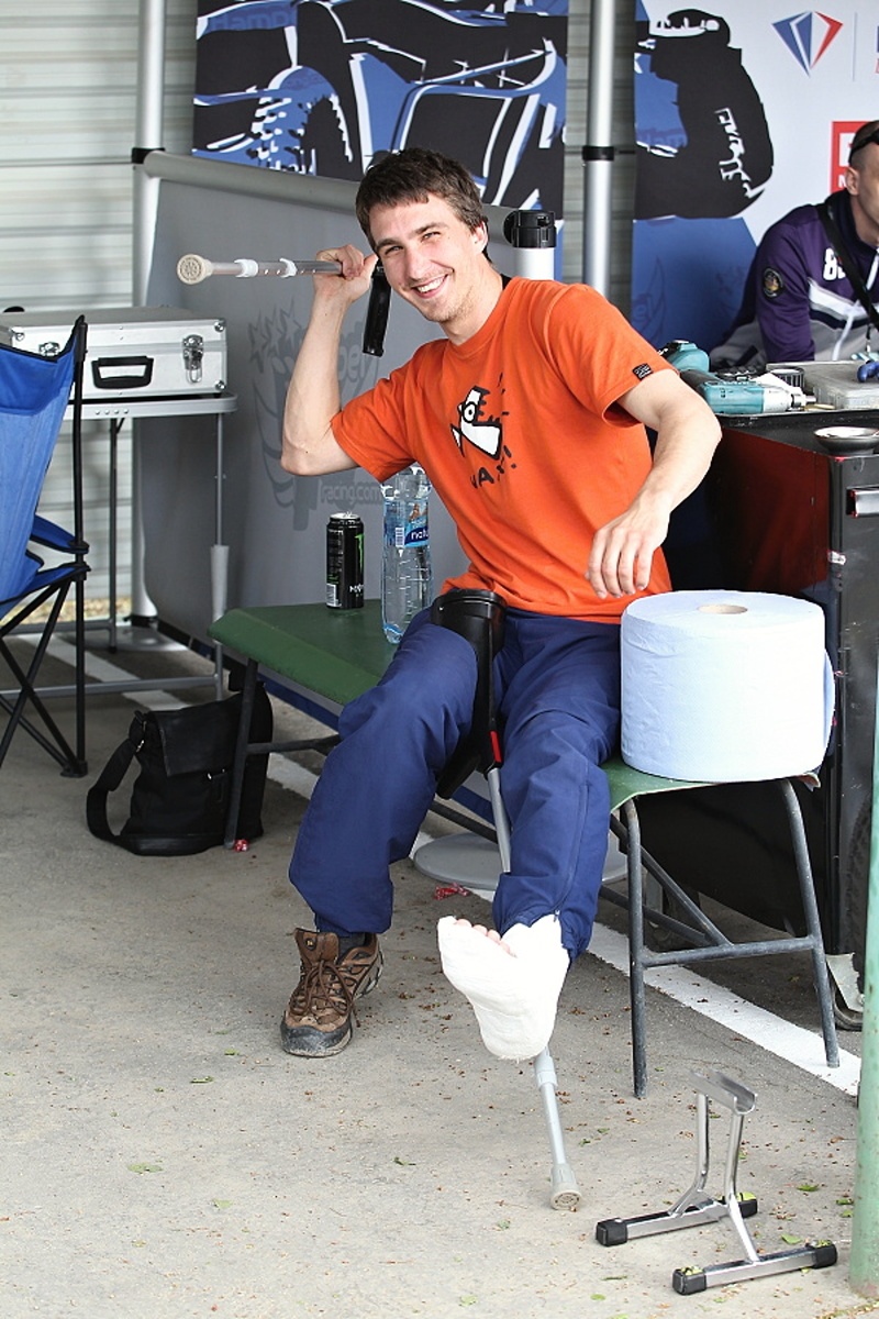 „Není to taková pohádka, jak jsem si myslel,“ říká březolupský závodník. „Jak jsem minulou středu odcházel zase se sádrou, bylo jasné, že takový rychlý comeback to nebude. Ptal jsem se doktora na ježdění a padly termíny v řádu měsíců. Takže těžko říct.“