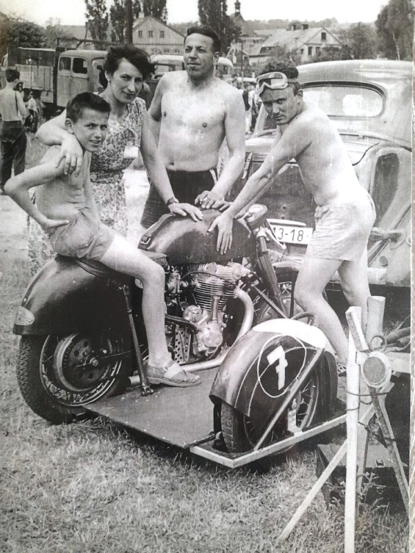 Otcova kariéra kulminovala na sajdkáře. „Táta měl první motorku na silnici sidecar Jawu kompresor, ty později zakázali, “ vybavuje si jeho syn. „Potom měl tovární Jawu 500 2xOHC, fabrika jich vyrobila deset, měly šestnáctky kola.“