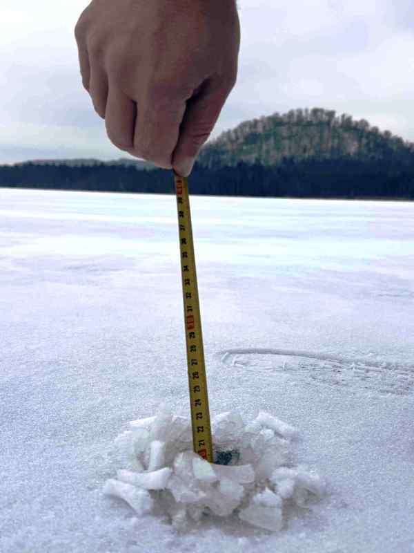 Tak sakra, kolik tam je? Petr Makušev nemohl vydržet čekat na odpověď na tuto otázku. A tak dnes odpoledne vyrazil do Hamru na Jezeře změřit sílu ledu. Výsledek mu dokonale vylepšil náladu. Jednadvacet centimetrů. Tím pádem je rozhodnuto. Začíná se makat, aby se tu v sobotu čtrnáctého jely mistrovské ledy.