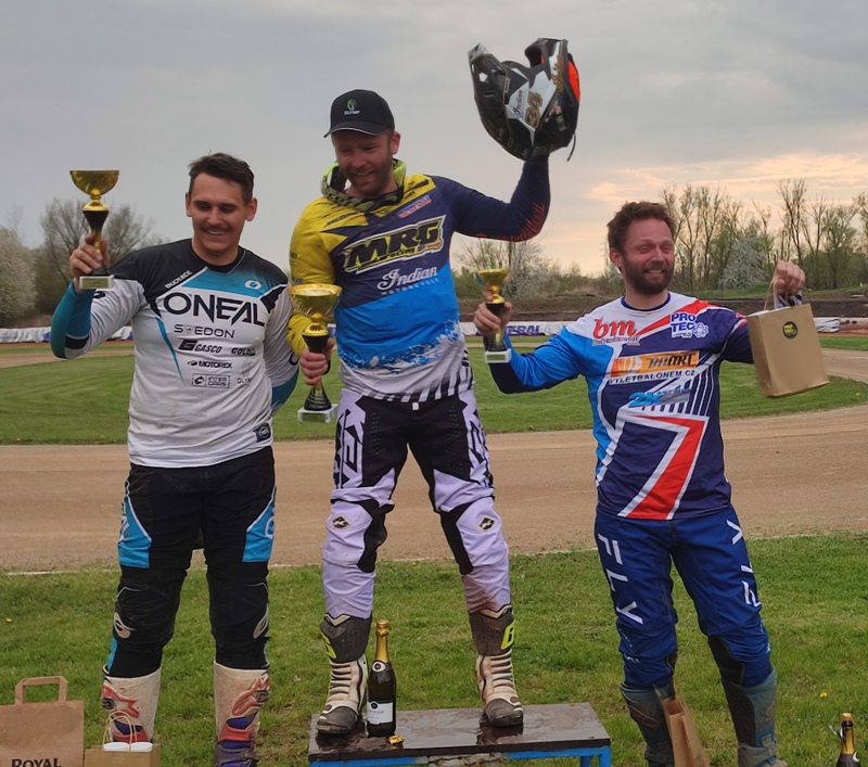 Sobotní odpoledne nabídlo v Chabařovicích kromě teplého slunečného počasí napínavý a vyrovnaný úvodní díl MČR ve flat tracku. Začátek tréninku kategorie classics poznamenal pád a zlomená žebra Jiřího Mikšovského. V péči zdravotníků skončila v sedmé rozjížďce také Barbora Čmochová, jediná zástupkyně něžného pohlaví v FT1.