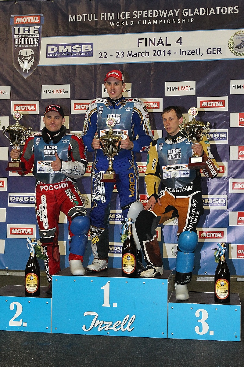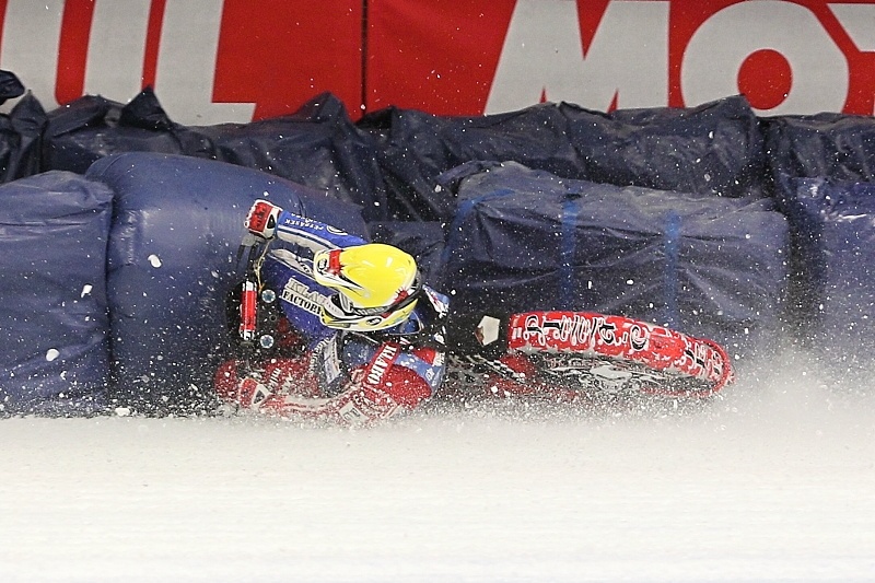 Dmitrij Koltakov triumfoval v sedmém finálovém podniku ledařského světového šampionátu. Během sedmi rozjížděk prohrál jen s Danilem Ivanovovem, jehož automat na vítězství se pokazil až ve finálové rozjížďce. V její metě byl první Dmitrij Koltakov, jemuž nakonec na stupních vítězů dělali společnost Sergej Makarov a Dmitrij Chomicevič. Danil Ivanov sice tentokrát vyšel naprázdno, avšak před nedělním šampionátem zůstává v čele průběžné klasifikace. Jan Klatovský začal nulou, aby se přes trojici druhých příček pokusil o postup do semifinále. Jenže přítrž jeho snaze učinil pád v rozjížďce s číslem dvacet.