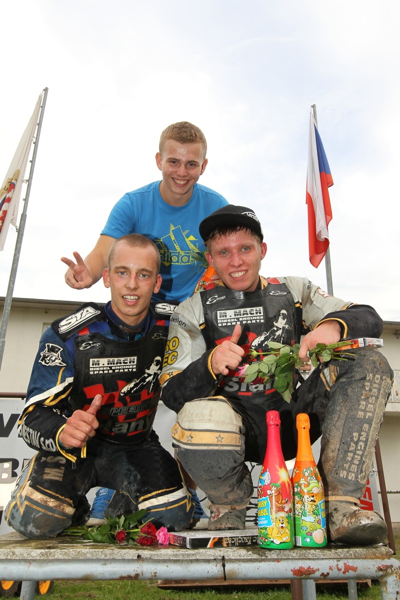 Ondřej Smetana: „Já nevím. Mně ty junioráky loni nešly. Jediný, kde jsem na stupně měl, bylo Mšeno na konci roku. Tam mi to o bod uteklo a to mě mrzelo. Dráha ve Mšeně mi sedí odjakživa. Dřív byla moje nejoblíbenější, i teďka ji mám rád, když je pěkná a na ten juniorák zrovna pěkná byla. Největší