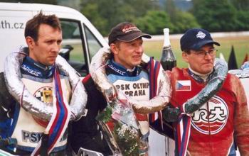 Jaroslav Pták: „Myslím, že je výhoda starších a vyzrálejších, že ta magořina v těhle případech už není taková. Ale jak jsem ti říkal po závodech, kdybych to uměl, brečel bych. Jednou za rok jedeme doma. Jsou tam oči těch, co nás podporujou. A takhle to dopadne. Kdo tomu rozumí, vidí to, ale kdo tomu nerozumí, vidí, že jsem byl až šestej. To mě bude mrzet dlouho. Zrovna vycházelo vše, jak by vycházet mělo. Svět na tom nepadá, ale potáhne se to se mnou i do nominace pro mistrovství světa v příštím roce. A to mě mrzí. Sám mám z Mariánek velmi dobrej pocit. Málokdy to řeknu, ale třeba k semifinále není zapotřebí komentář. Je to tak. Úroveň mistrovství republiky jde stoprocentně nahoru. Je to jen otázka času, kdy mistrák bude plnohodnotnej. Ale tím, že je otevřený i pro cizince, má velmi dobrou úroveň. To je zásluha Míry Musila. Tady v karlovarskejch novinách už jednou psali, že dráha v Mariánkách bude rozparcelovaná na baráky. A díky Mírovi, že to vzkřísil.“