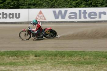 dobrý, ale na finále A to nestačilo. V Pfarrkirchenu bylo hodně našlápnuto. Dostal jsem se do béčka. A neodjel jsem od startu. Padá to na moji hlavu. Pak už s tím nešlo nic dělat. Jde předjet jednoho, ale ne tři. Byla to škoda. Celej den dřeš a pak tohle. Dráha tam je nádhera. Nemá chybu. Po tréninku začalo pršet. Pršelo celou noc a dopoledne. Ale i takhle rozmáčená dráha byla perfektní. Je asi nejlepší a mám ji nejradši. Rychlá, klopená, perfektní. Užší než v Mariánkách, musíš to tam uřídit, rychlostní průměr je tam vyšší. Ve finále jsem nakonec mohl jet v rozjížďce poslední šance v Morizes. Petr Moravec mně volal ve středu. Měl jsem auto na heveru s rozebranou přední osou. Ve čtvrtek bych musel odjíždět, takže jsem odřekl. Všechno se točí kolem ekonomiky. Byla to škoda, v Morizes mi to jde. Pak jsem čekal, jak se Pavel Ondrašík rozhodne s challenge. Nakonec ho jel on. Zase se to všechno odvíjí od toho průšvihu s řemenem v Mariánkách…“
