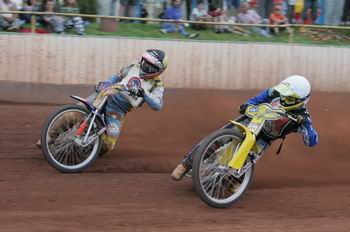 Úvod mítinku patřil Pardubicím. Do první rozjížďky nejlépe odstartoval Josef Franc, který si však stěžoval na střevní potíže. V úvodním oblouku ho však objel Matej Ferjan. Pardubické vedení vzápětí konsolidoval Aleš Dryml.