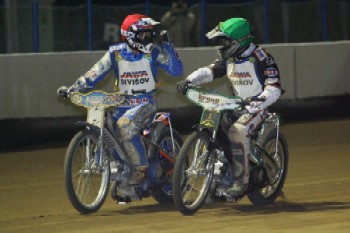 Filip Šitera a Josef Franc projeli cílem úplně vzadu. Pro pražského borce byl jeden bod jeho posledním v dnešním klání. „Na tvrdý dráze nikdy nezajedu,“ vysvětloval příčiny. „První jízda ve vylučovačce byla dobrá. To tam bylo ještě trošku materiálu.“ Zato plzeňský junior se zapojil do hry o postup.