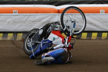 Pro Martina Gavendu však šlo už o třetí dnešní pád. Nejprve se s povrchem borské dráhy seznámil v tréninku. Vzápětí lehl na začátku posledního kola rozjížďky s číslem pět, kterou suverénně vedl. „Jak jsem spadl v tréninku, dostal se mi do ručky bordel,“ vysvětloval. „A teď mi ručka sjela a spadla mi ruka.“