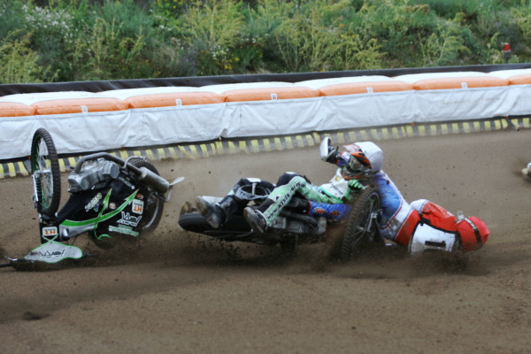 Hned v rozjížďce s číslem jedna si nezkušený rozhodčí Jaroslav Líbal všimnul, že páska zůstala jednou stranou viset až v půlce prvního kola. A teprve pak rozsvítil červená světla. Při repete jeli Michael Hádek a Jan Holub startmaršálovým omylem celých pět kol.