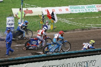 Slaný se dostal na stejnou úroveň s Libercem až v sedmnácté jízdě. Když Michala Dudka zradil motor už v první zatáčce a Krzysztof Nowacki byl až třetí za Tomášem Suchánkem a Jaroslavem Petrákem, nikdo ve slánských boxech nemohl očekávat více než povinný bod.