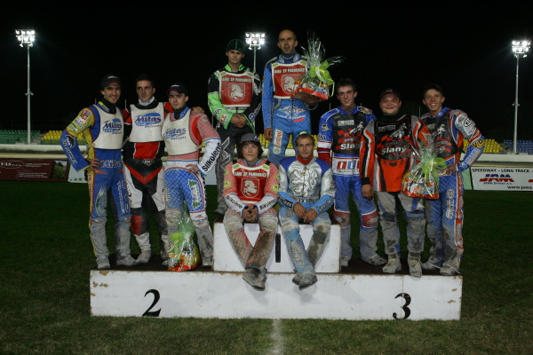 Stejně jako před čtrnácti dny dominovaly podniku přeboru tříčlenných družstev na pražské Markétě Pardubice. Východočeský celek startující v nejsilnější možné sestavě s taktikou čtyř jízd pro každého člena nepoznal výraznějších problémů. Nicméně Březolupy skončily druhé a potvrdily tak svůj titul nezávisle na výsledku sobotního závěrečného klání na jejich domácí dráze. Na třetí příčku se vydrápal Slaný, když Michal Dudek triumfoval v rozjezdu, z něhož byl Jan Holub diskvalifikován. Vložené klání stopětadvacítek opanoval Zdeněk Vrba, když nevyhrál jen jedinou jízdu, v níž kvůli závadě dojel jen do druhé zatáčky.