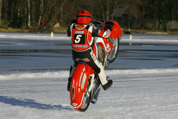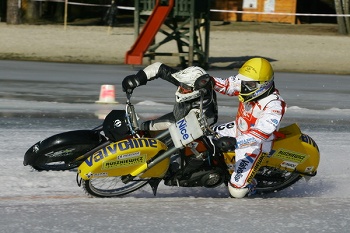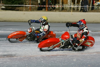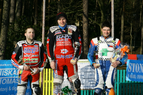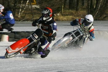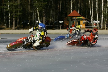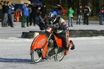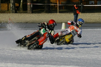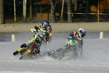 Sluníčko se opíralo do ledu, když se krátce po půl jedné vrátili závodníci z nástupu ke svým motocyklům. Hned rozjížďka s číslem jedna aspirovala přinést nečekaný výsledek. Jan Pecina