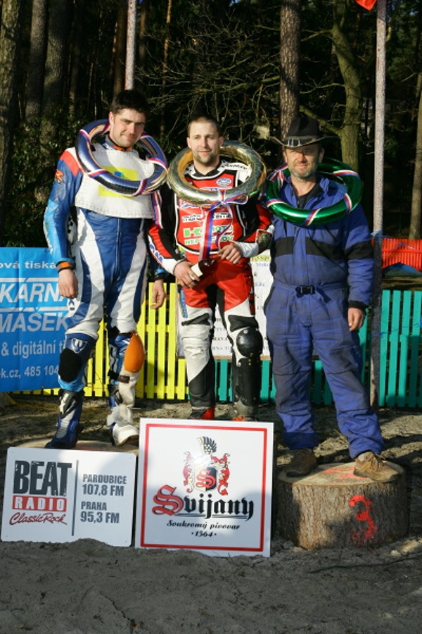 „První dvě jízdy, přední kolo a řetěz, s tím nenaděláš nic,“ krčil rameny Petr Klauz. „Ale ty další tři jízdy ukázaly, kdo má vrch. Škoda, moh‘ bejt‘ věnec. Příště. Až ale příští rok, to je chyba. Letos už úspěch nebude. Uvidím, jestli se pojedou družstva. Škoda, ale jak pro koho, nám by to s Andrejem stačilo (smích). V jednotlivcích byl ale smolík. Nejdřív páska a guma, teď guma a řetěz. V létě budu jezdit motokros pro radost na tátově trati, možná i závody.“