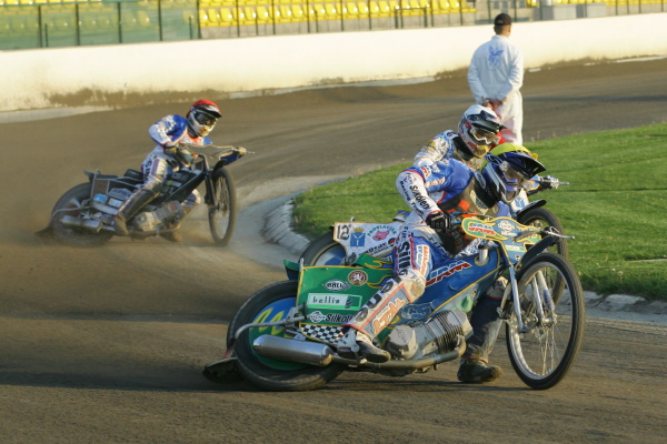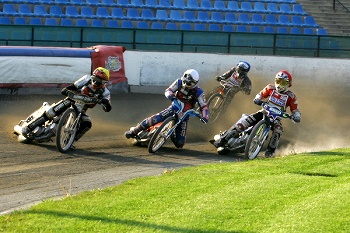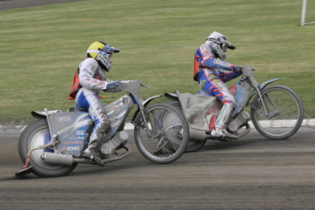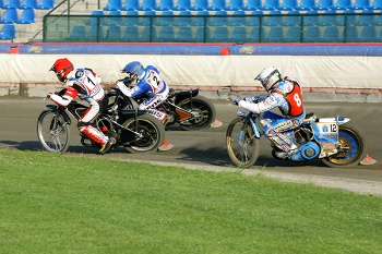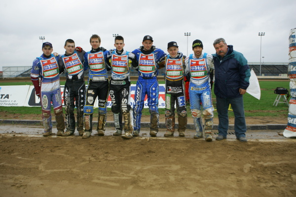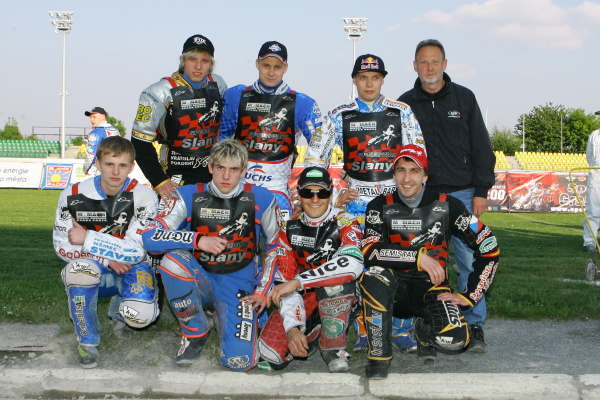 Juniorská jízda poslala hosty na čelo průběžné klasifikace. Roman Čejka s Michalem Dudkem odstartovali svorně jako jeden muž. Jaroslav Hladký však evidentně nezapomněl včerejší duel při juniorských družstvech v Plzni a ve výjezdu se vnitřní stopou dostal na druhou příčku. Ještě před koncem úvodního okruhu byl ovšem Michal Dudek zpátky na druhé pozici.