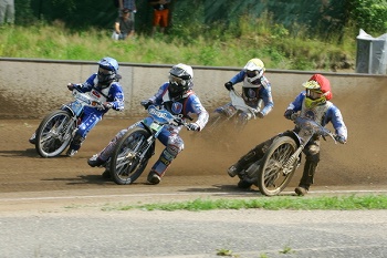 Své zaváhání napravily Pardubice hned v deváté jízdě. Jaroslav Petrák s Tomášem Suchánkem se promptně vypořádali s útočícím Pavlem Pučkem. V desáté jízdě Martin Gavenda s Michalem Dudkem hravě vyřídili oba mšenské juniory a dostali tak Březolupy o jeden bod za vedoucí Plzeň. Třetí Pardubice v půli mítinku ztrácely na vedoucí příčku pět bodů.