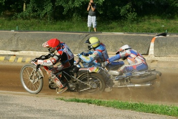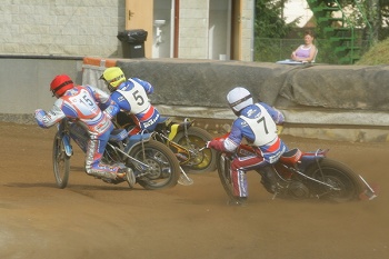 Jan Holub prodloužil sérii své neporazitelnosti v rozjížďce s číslem tři, v níž odvedl Jana Jaroše. Mšeňák se sice sunul vnějškem první zatáčky dopředu, avšak Jan Holub zůstával ve střehu. „Zatáčka mi rychle zmizela a už jsem nevymyslel nic,“ pokrčil Jan Jaroš rameny. Zdeněk Simota, který kvůli zánětu v koleni dva týdny neseděl na motocyklu, inkasoval poslední bod.