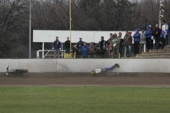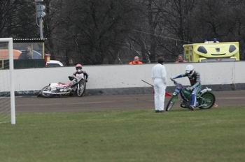 Chladno, studený vítr a občas pichlavé vodní kapky ze zamračené oblohy. Taková scéna tvořila kulisy úvodního extraligového dějství. Kapalina na bázi alkoholu byla tentokrát nejen pohonnou látkou plochodrážních půllitrů, nýbrž také médiem hřejícím útroby nejednoho z přítomných. Především první série byla totiž velkou zatěžkávací zkouškou pro diváky, protože ani jedna z čtveřice rozjížděk nesměřovala přímočaře k šachovnicové vlajce. Nicméně publikum navzdory zimě jako v psírně obstálo na výbornou.