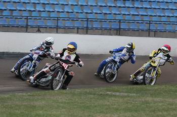 Nejrychleji odstartoval Aleš Dryml. Ovšem bitva o vítězství se odehrávala za jeho zády. Maximum pro úspěch svého celku udělal Sebastian Ulamek, když v první zatáčce sebral společně s Adrianem Rymelem druhé místo Andrzeji Huszczovi. Už už to vypadalo na rozjezd Olympu a Slaného, když zasáhl Andrzej Huszcza. Ve druhé zatáčce druhého kola podjel Adriana Rymela. Plzni už na vyšší stupínek nepomohl, nicméně jeho manévr korunoval Slaný za vítěze závodu.