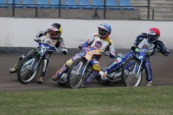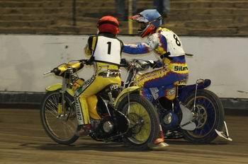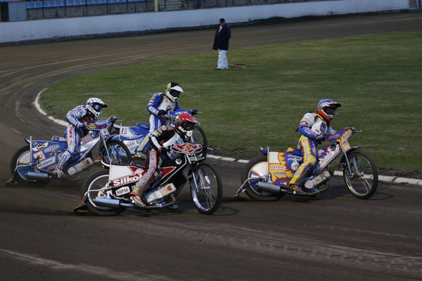 Zdeněk Simota byl poslední, ale dostál pověsti bojovníka. Tak dlouho atakoval Hynka Štichauera, až jej v předposlední zatáčce objel. I tak však Plzeň ztratila vedení, ale jen na pouhý okamžik. Do rozjížďky s číslem sedm sice odstartoval nejlépe Aleš Dryml, leč důrazný útok vnitřkem prvního oblouku vynesl do čela Andrzeje Huszczu.