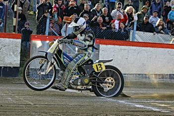 přitahován k magnetu. V poslední zatáčce se prosmýkl pod Angličanem na druhé místo. Inkasoval bod jistoty, který ho sice nedostal do finálové jízdy, ale do elitní dlouhodrážní společnost pro příští rok ano.
