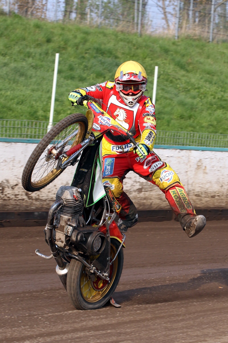 motocyklu. S ním zápasil i Michal Škurla. Cílem rozjížďky s číslem tři projížděl jako vítěz, avšak mladší Patrik Mikel a Filip Hájek na počátku sezóny přece jen nemají ještě potenciál prověřit jeho kvality.