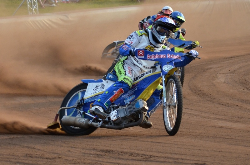 Domácí koaliční družstvo se dotáhlo na Slaný, nicméně o vedení se s ním nehodlalo v žádném případě dělit. Raketový start v rozjížďce s číslem čtyři stál za velkým sólem Ronnyho Weise. Hynek Štichauer za sebou nechal Michala Dudka a pustil se do Zdeňka Holuba. O druhou příčku jej připravil jen na chvíli, navíc v depu zjistili, že se vrátil s prasklým středním dílem rámu.