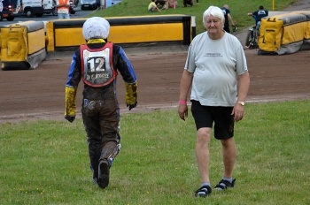 Finále bylo dnes skutečně hodné svého jména. Ronny Weis řešil technické patálie svého motocyklu a dvouminutový limit stihnul jen za cenu přímé cesty z vrat depa na rošt rovnou přes trávník. „Ronny má jedničku?“ otázal se prve Eduard Krčmář, když se jej Jaroslav Drbal ptal, kterou dráhu si chce zvolit. „Tak to já si stoupnu nad něj!“