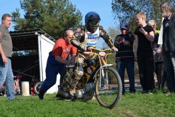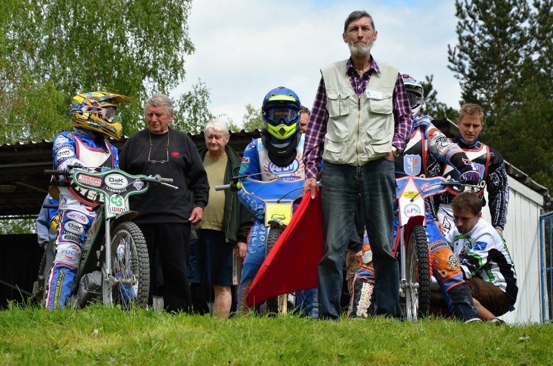 Potíže měl i Jan Holub, v jehož boxu stálo jenom GM. „Včera Jéňovi prasknul ve třetí jízdě rám,“ říkal jeho dědeček Jan, že motocykl ve druhém finále šampionátu v Březolupech vskutku s takovým handicapem nemohli na tvrdnoucí povrch přizpůsobit. „Prasklo to v místě pod trubkou, co drží motor, navíc pod dečkou, kde to není vidět.“
