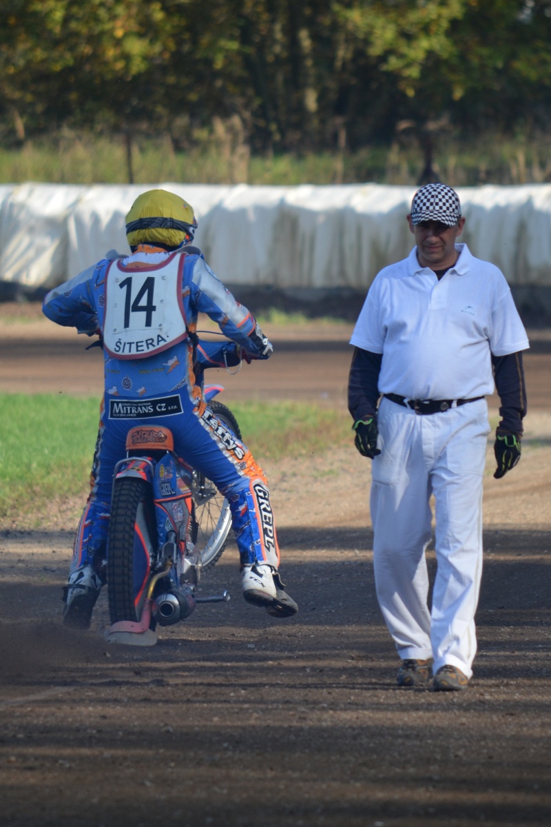 Kvůli sanitě se začalo o dvacet minut později, ovšem za nádherného babího léta nikdo zpoždění neřešil. Mšeno se rozhodlo stylizovat se do role favorita. Stále se lepšící Filip Šitera posunul svůj comeback ještě do lepší roviny. Triumfoval stylem start – cíl před Martinem Gavendou, jenž v první zatáčce objel Michala Dudka.
