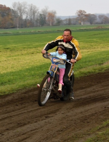 Rozlučka v Kostěnicích minulou sobotu nabídla možnost pro svezení na plochodrážním motocyklu rovněž pro příchozí, kteří běžně na ploché dráze nezávodí. Avšak noční déš přinutil Motoklub Úhřetická Lhota svou akci nejprve odvolat a tak celá řada zájemců nakonec do malé obce na Pardubicku nedorazila. Po poledni však na kolečku blízko drážního tělesa prvního železničního koridoru přece jen zabouřily motory. Kromě sluníčka to měl na svědomí i nezdolný optimismus Vladimíra Višvádera. Přitom nezapřel svou bouřlivou krev. Neodolal a po ovále prohnal nejen svoje osobní volvo, ale také plochodrážní speciál. Magazínu speedwayA-Z se ovšem svěřil, že závodní comeback nemá v plánu.