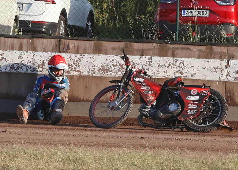 Blaf, ale plameny naštěstí rychle uhasil hasičák od metylárny. „Stalo se mi to poprvý,“ přemítá. „Takže jsem ani nevěděl, co mám dělat. A druhá motorka se taky pokazila, takže mně nezbývalo nic jinýho než odstoupit ze závodu, což mě mrzí doteď.“