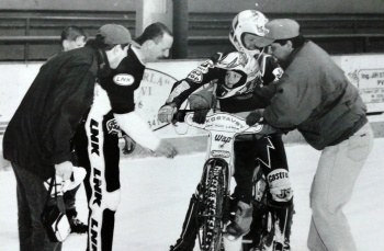 „Pozval nás Tonda Klatovský,“ vypráví Zdeněk Simota, kterak se ještě před svým vstupem do světa speedway proháněl s půllitrem po ledové ploše táborského zimáku. Klasické ledy si u nás vinou mírných zim dopřávaly pauzu. A legendární borec se chtěl pochlubit svými potomky také ve svých jižních Čechách. V brzkém jaru rok co rok organizoval show na hokejových stadiónech, jejichž majitelům se náramně hodilo, že na rozbíjení ledu dorazí i diváci. A dokonce zaplatí vstupné.