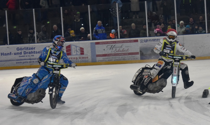 Krajina se houfně zbavuje bílých tónů ve své šatníku. V módě je zelená. Paní Zima se ale nevzdává své vlády. Ani v plochodrážním kalendáři. Městečko Niesky nevyjímaje. Saská série Drift-On-Ice má mezi lidmi zvuk. Její hlavní organizátor Ronny Weis kraluje i na ledě, takže si včera připsal další triumf. Hynek Štichauer si jasně řekl o vítězství v rozjížďce poslední šance. Postoupil do finále, kde čtvrtá pozice na roštu nebyla nikterak výhodná. Po odstoupení Richarda Geyera se nakonec podíval na nejnižší stupínek pódia.